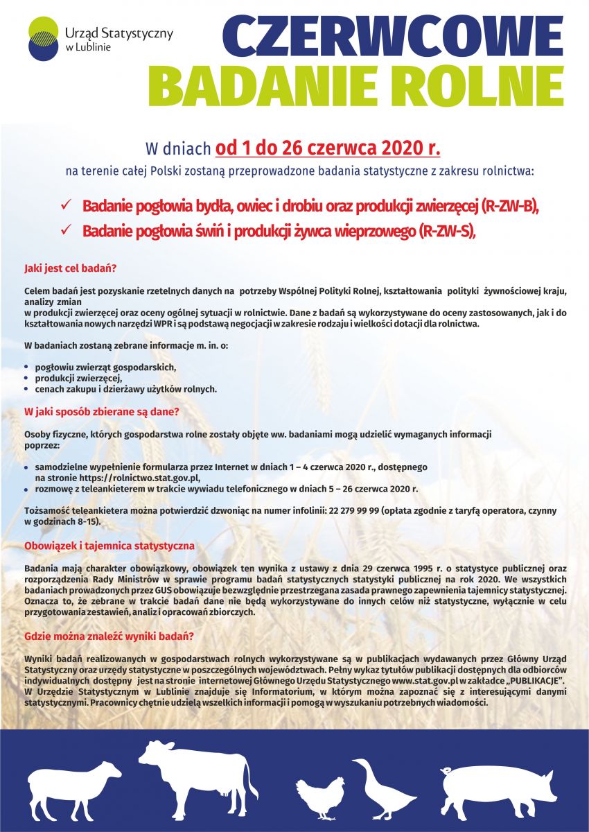 W dniach od 1 do 26 czerwca 2020 r. na terenie całej Polski zostaną przeprowadzone badania statystyczne z zakresu rolnictwa: