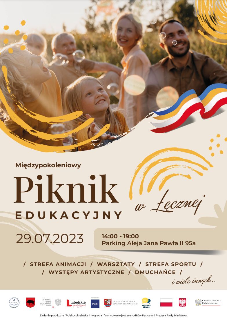 Burmistrz Łęcznej zaprasza - już w najbliższą sobotę, tj. 29 lipca od godziny 14:00 do 19:00 odbędzie się Międzypokoleniowy Piknik Edukacyjny. Wydarzenie ma charakter bezpłatny i otwarty dla wszystkich mieszkańców Łęcznej. Wśród atrakcji m.in.