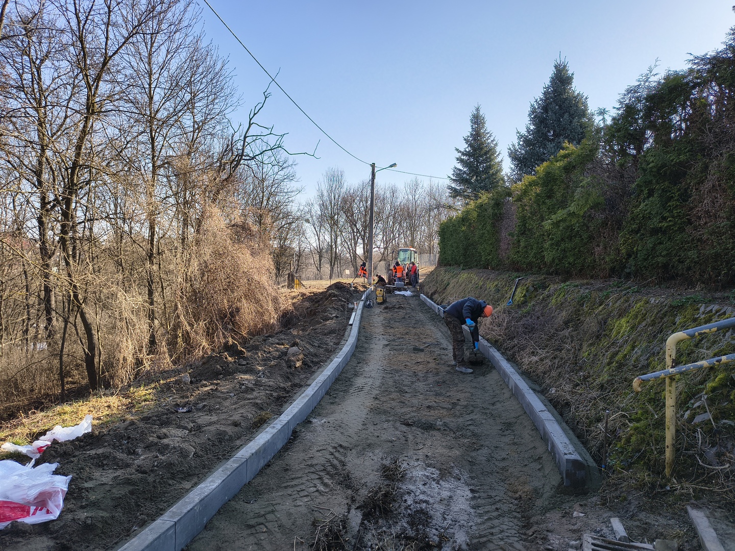 Dzisiaj zaglądamy na tereny nadrzeczne przy Środowiskowym Domu Samopomocy gdzie trwają prace przy zagospodarowaniu terenu oraz budowie alejek oraz nad Świnkę gdzie budowana jest nowa ścieżka pieszo-rowerowa.