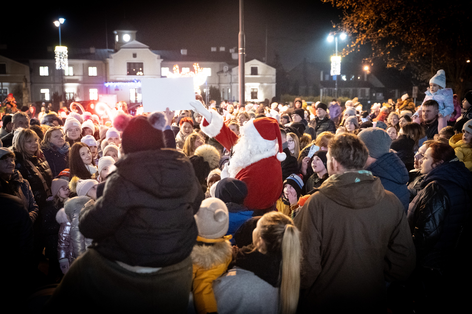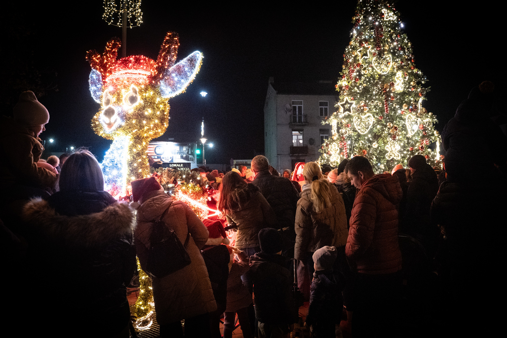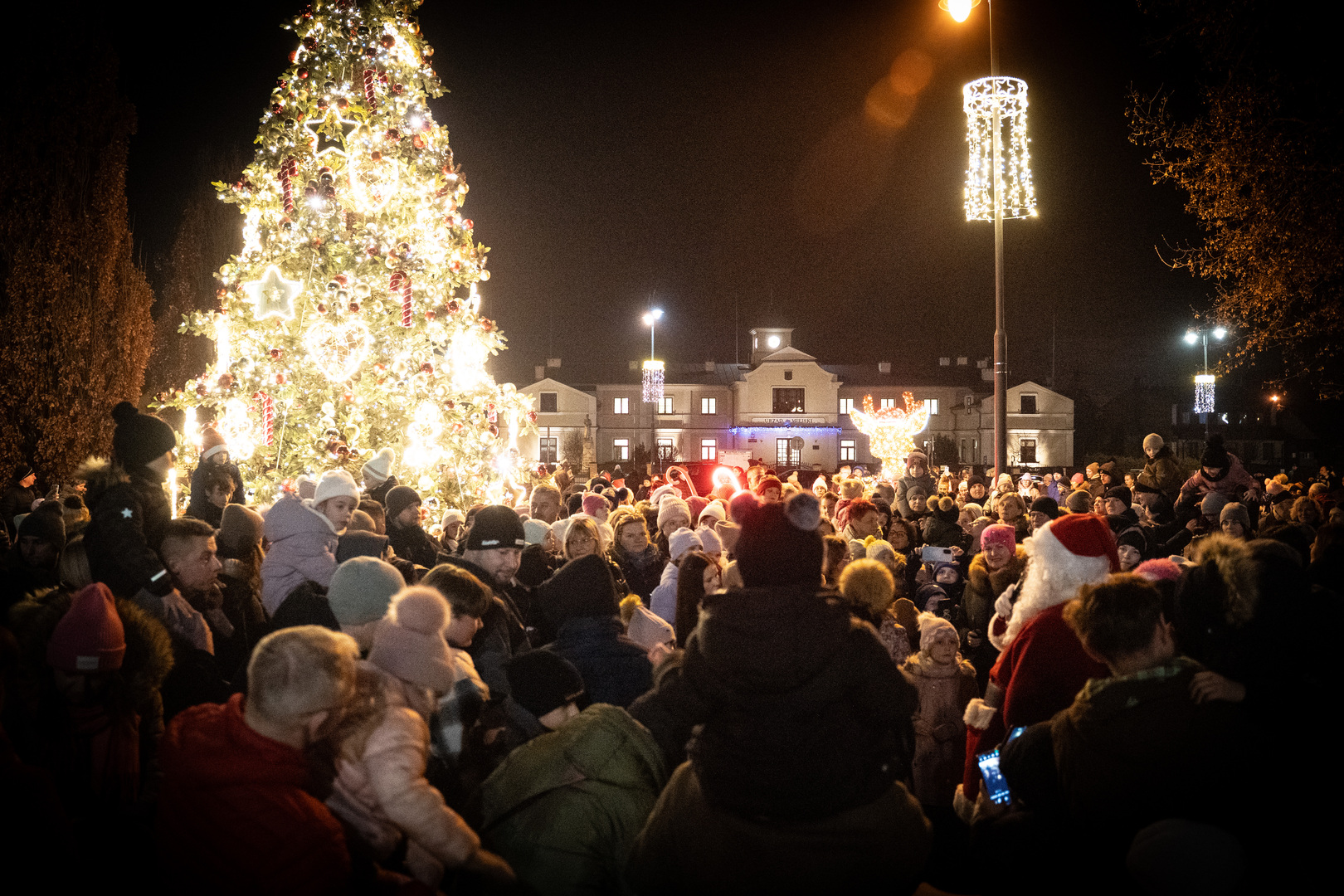 Chwilę po godzinie 17 na placu zjawił się Święty Mikołaj, który od razu przyciągnął uwagę najmłodszych. Wspólnie z mieszkańcami rozpoczął głośne odliczanie - od 10 do 0, po którym choinka rozbłysła tysiącami światełek. Na placu rozległy się okrzyki zachwytu i spontaniczne brawa.