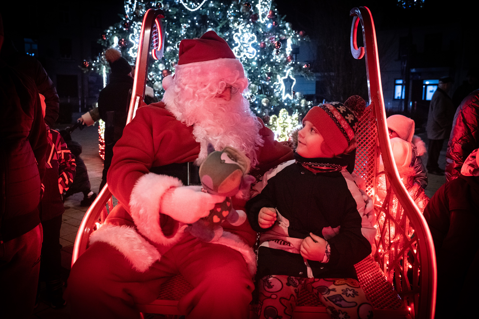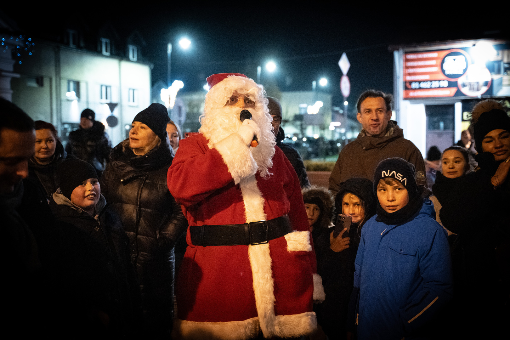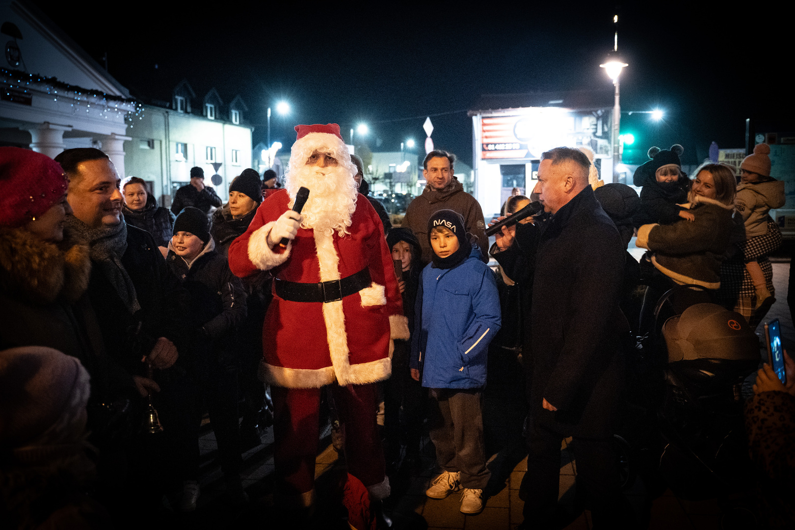 Chwilę po godzinie 17 na placu zjawił się Święty Mikołaj, który od razu przyciągnął uwagę najmłodszych. Wspólnie z mieszkańcami rozpoczął głośne odliczanie - od 10 do 0, po którym choinka rozbłysła tysiącami światełek. Na placu rozległy się okrzyki zachwytu i spontaniczne brawa.