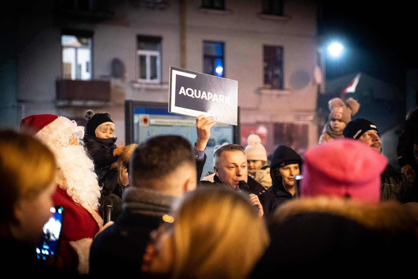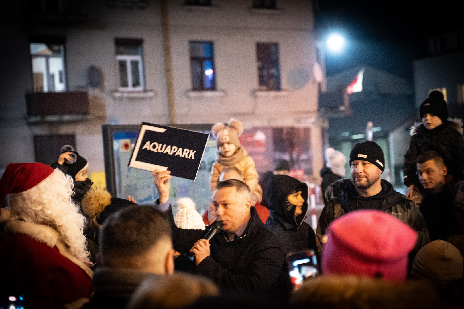 Mikołaj nie przyszedł jednak tylko po to, by obdarowywać dzieci słodkościami. Miał także specjalną wiadomość dla Burmistrza Łęcznej Leszka Włodarskiego. W symboliczny sposób przekazał mu „prezent” – informację o rozpoczęciu prac nad Aquaparkiem w Łęcznej, co wywołało ogromną radość nie tylko wśród najmłodszych, ale i dorosłych mieszkańców.