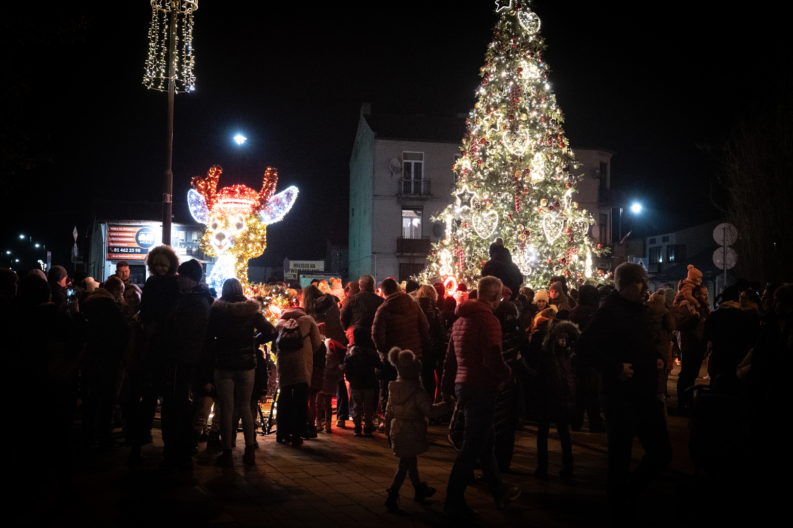 Bardzo dużo mieszkańców przyszło w poniedziałkowy wieczór na uroczyste uruchomienie nowej choinki w Łęcznej oraz iluminacji z reniferem i saniami. Na placu pojawiły się całe rodziny, sporo nastolatków, a także wielu dorosłych i seniorów, którzy chcieli wspólnie poczuć świąteczny klimat.
