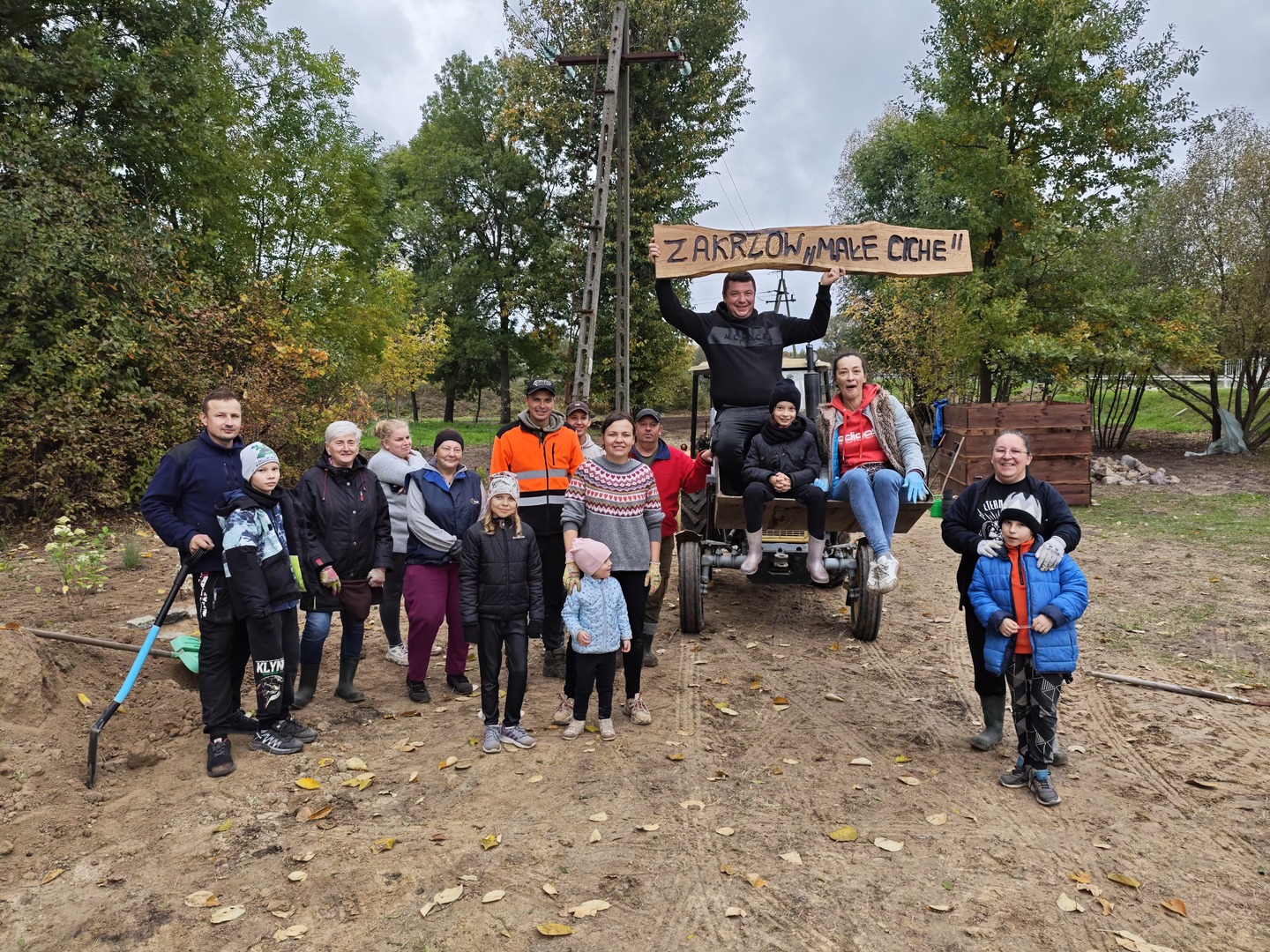 Prace trwały od sierpnia do listopada i objęły teren nad rzeką oraz obszar w pobliżu miejscowej remizy. Mieszkańcy wspólnie przystąpili do uporządkowania i ponownego zagospodarowania zielonej przestrzeni, która od lat czekała na zmianę. Usunięto wieloletnie chwasty, wyrównano teren, a następnie posadzono nowe drzewa, krzewy i byliny. Miejsca dotąd zaniedbane zyskały zupełnie nowe oblicze — jeszcze przed zimą wysiano trawę oraz łąkę kwietną, której pełny efekt będzie można podziwiać w przyszłym sezonie.