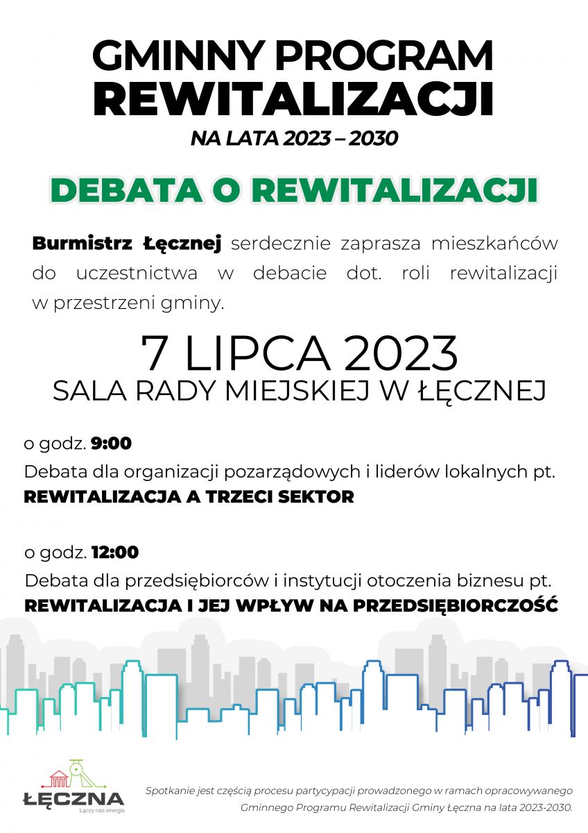 Burmistrz Łęcznej serdecznie zaprasza mieszkańców do uczestnictwa w debacie dot. roli rewitalizacji w przestrzeni gminy.